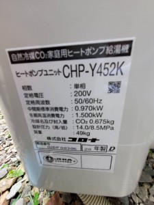 出雲市 コロナ自然冷媒CO2家庭用ヒートポンプ給湯器貯湯ユニットCTU-37AY2K、ヒートポンプユニットCHP-Y452K